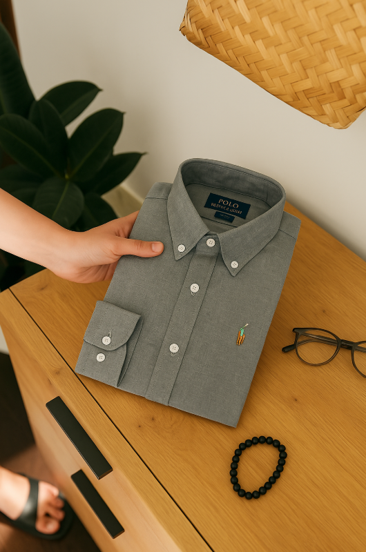 Bring timeless sophistication to your wardrobe with the Ralph Lauren Classic Oxford Shirt. Expertly tailored from premium cotton oxford fabric, this shirt ensures superior comfort, durability, and a crisp finish that holds its shape all day. The versatile grey tone adds a modern edge, while the iconic multicolor Ralph Lauren pony logo embroidered on the chest highlights its heritage of luxury and refinement.