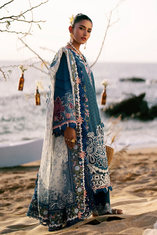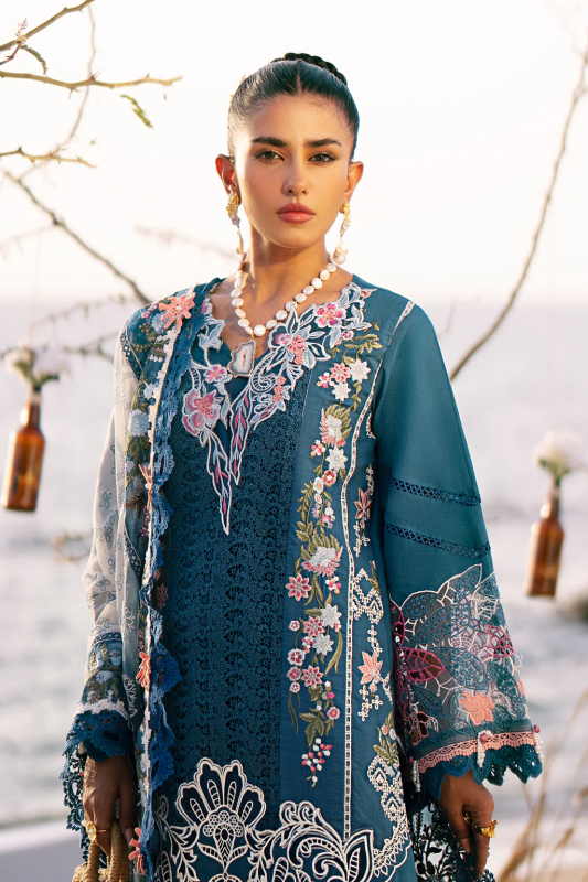 Elevate your festive and formal wardrobe with this luxurious embroidered lawn suit featuring a perfect blend of laser embroidery, resham threadwork, and hand-painted chiffon details. Designed with premium fabrics and intricate embellishments, this 3-piece suit is a timeless statement of elegance.