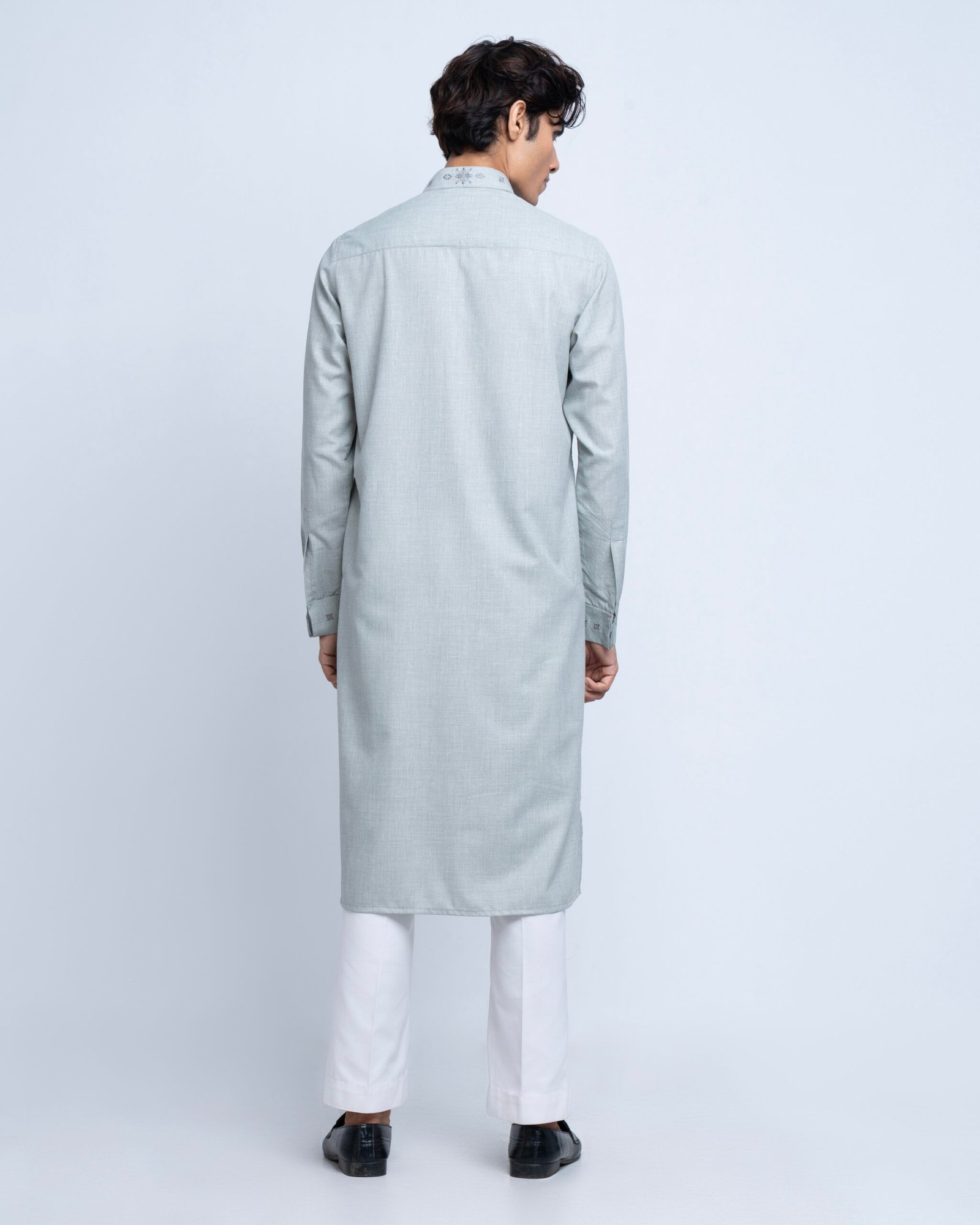 Redefine sophistication with this Premium Grey Panjabi, tailored from 100% pure cotton for superior comfort and breathability. The subtle grey tone is enhanced with intricate embroidered detailing on the placket and cuffs, giving it a refined and graceful look. Ideal for festive occasions, cultural gatherings, or casual elegance.