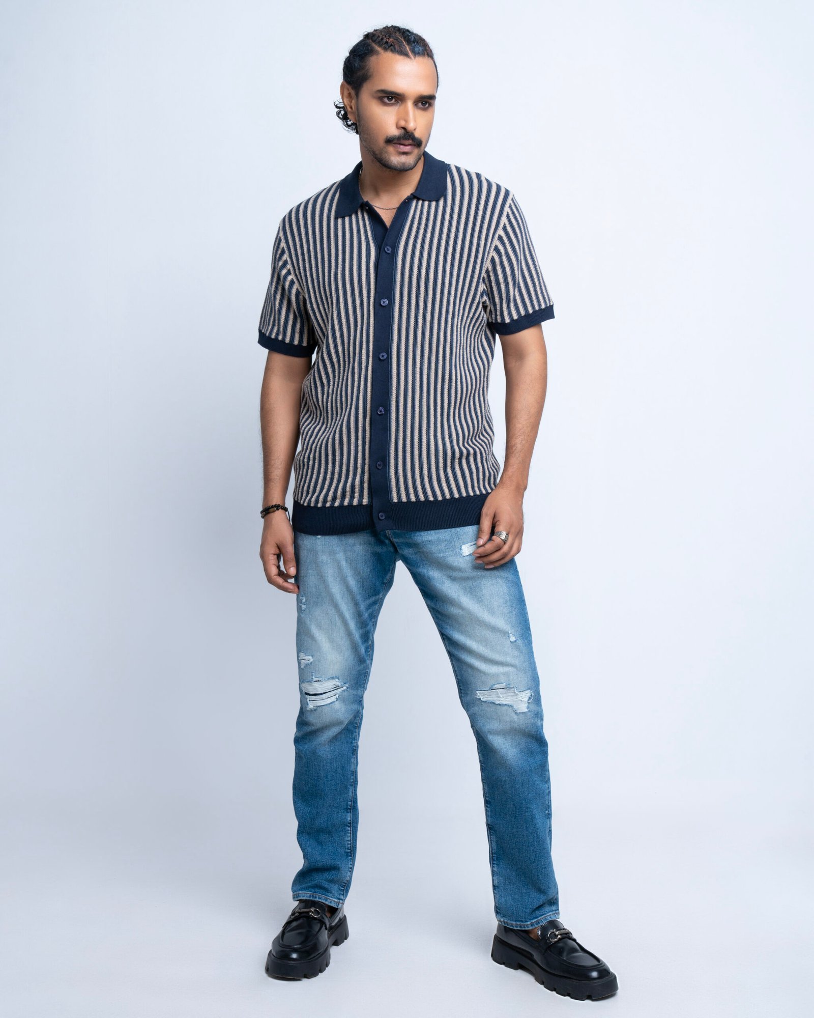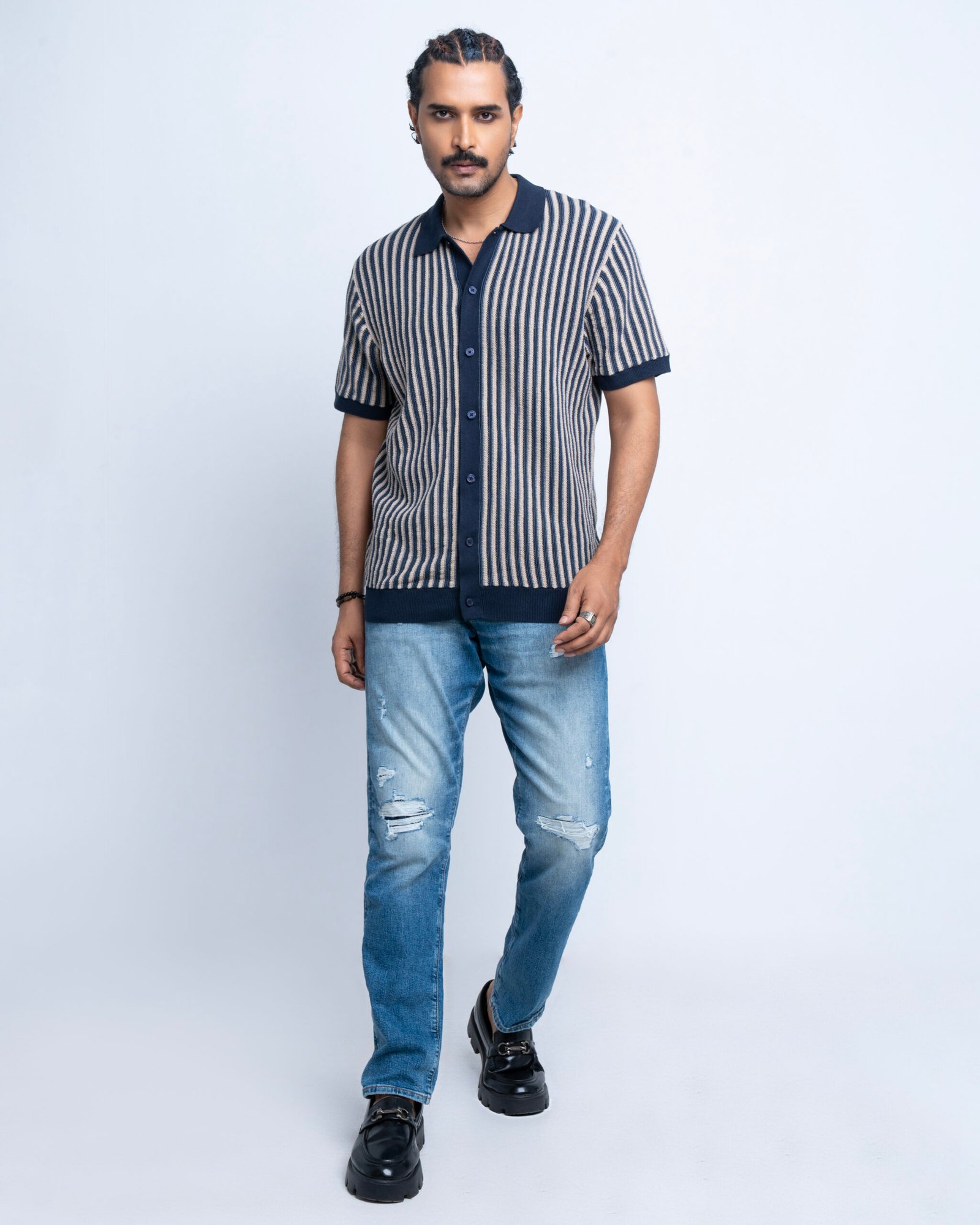 Textured stripe knitted shirt